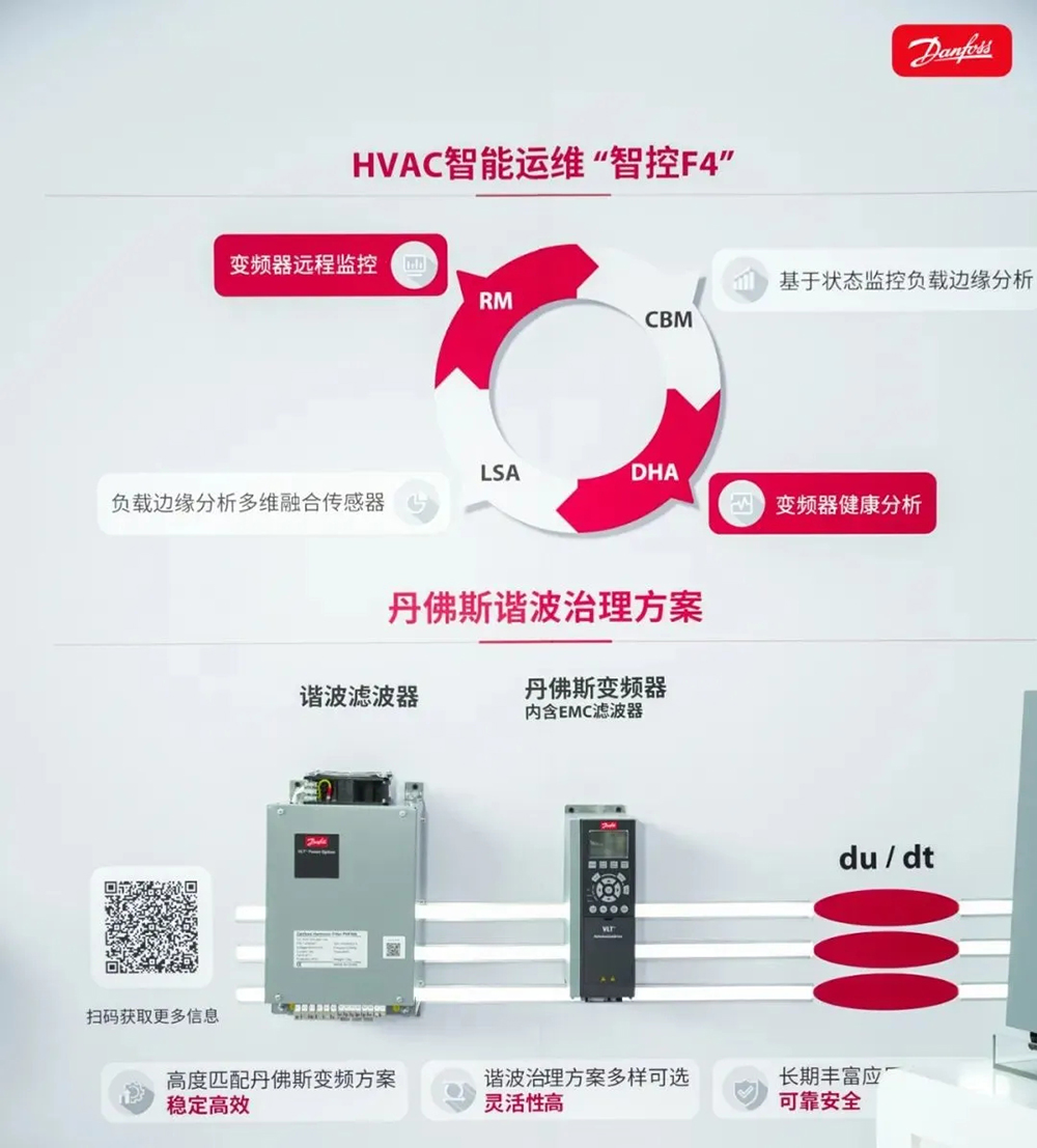 丹佛斯擁有多種諧波抑制的解決方案,有效降低諧波含量,提高了系統(tǒng)效率,實現(xiàn)長期穩(wěn)定運行。丹佛斯經(jīng)認證的控制諧波的解決方案包含有源濾波器、高級無源濾波器、低諧波變頻器、多脈沖變頻器及有源前端變頻器。此外,丹佛斯以“丹管家”智能運維解決方案為核心,為綠色廠務(wù)提供從監(jiān)測到優(yōu)化的全鏈路支持,包含變頻器遠程監(jiān)控(RM)、基于狀態(tài)監(jiān)控負載邊緣分析(CBM)、變頻器健康分析(DHA)及負載邊緣分析多維融合傳感器(LSA),可有效降低老舊廠房綠色改造升級的成本,經(jīng)濟價值凸顯。