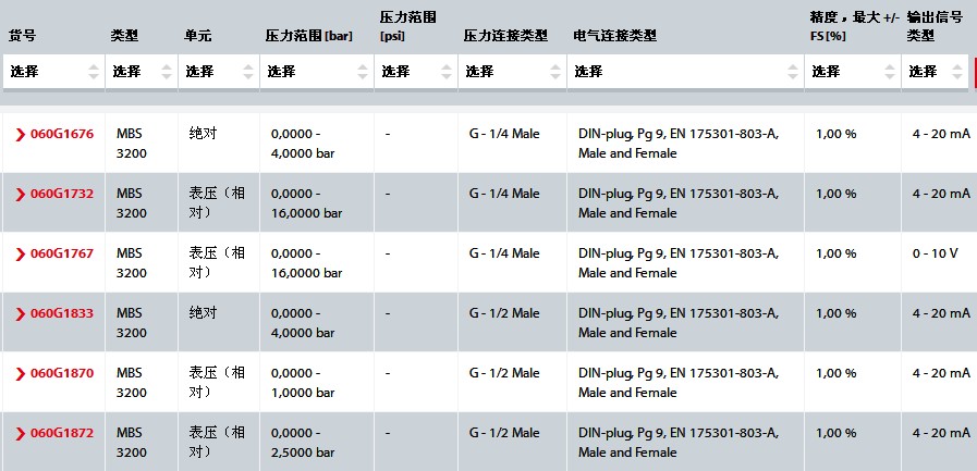 這款靈活的壓力變送器系列包括 4-20 mA、0-5 V、1-5 V、1-6 V 和 0-10V 輸出信號、絕對壓力和表壓(相對壓力)型號、從 0-1 到 0-600 bar 的測量范圍以及規(guī)格齊全的壓力和電氣連接。