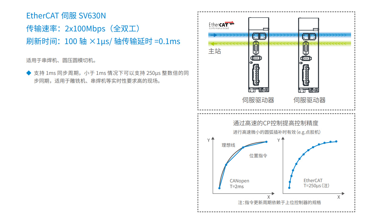 SV630 系列伺服是匯川技術(shù)研制的高性能中小功率的交流伺服產(chǎn)品。該系列產(chǎn)品功率范圍為0.05kW ~ 7.5 kW,采用以太網(wǎng)通訊接口,支持EtherCAT 、Modbus、CANopen 和CANLink 等通信協(xié)議,采用對應(yīng)的通信接口,配合上位機(jī)可實現(xiàn)多臺伺服驅(qū)動器聯(lián)網(wǎng)運行。