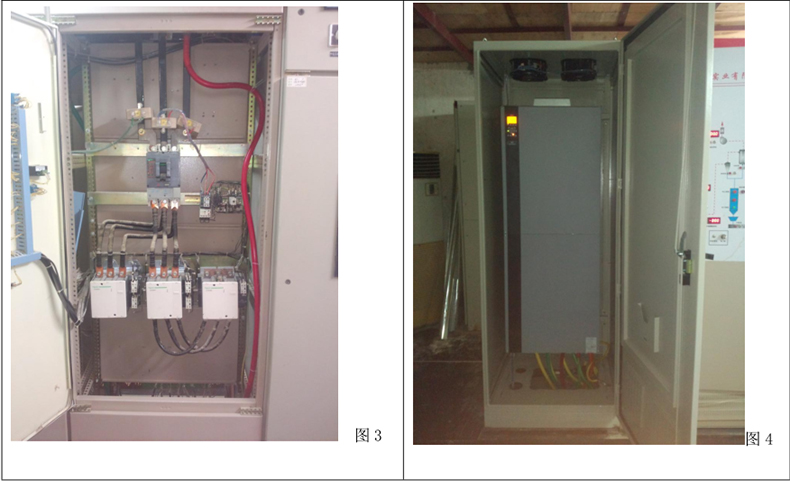 根據(jù)實際情況及以上的分析,電機采用丹佛斯 FC302 系列變頻器(額定功率 315KW,額定電流 600A)控制,變頻器前端加裝一個保護斷路器(額定電流 630A),因生產車間環(huán)境很惡劣,需為變頻器配備電柜(如上圖 4),放置于中央控制室。
