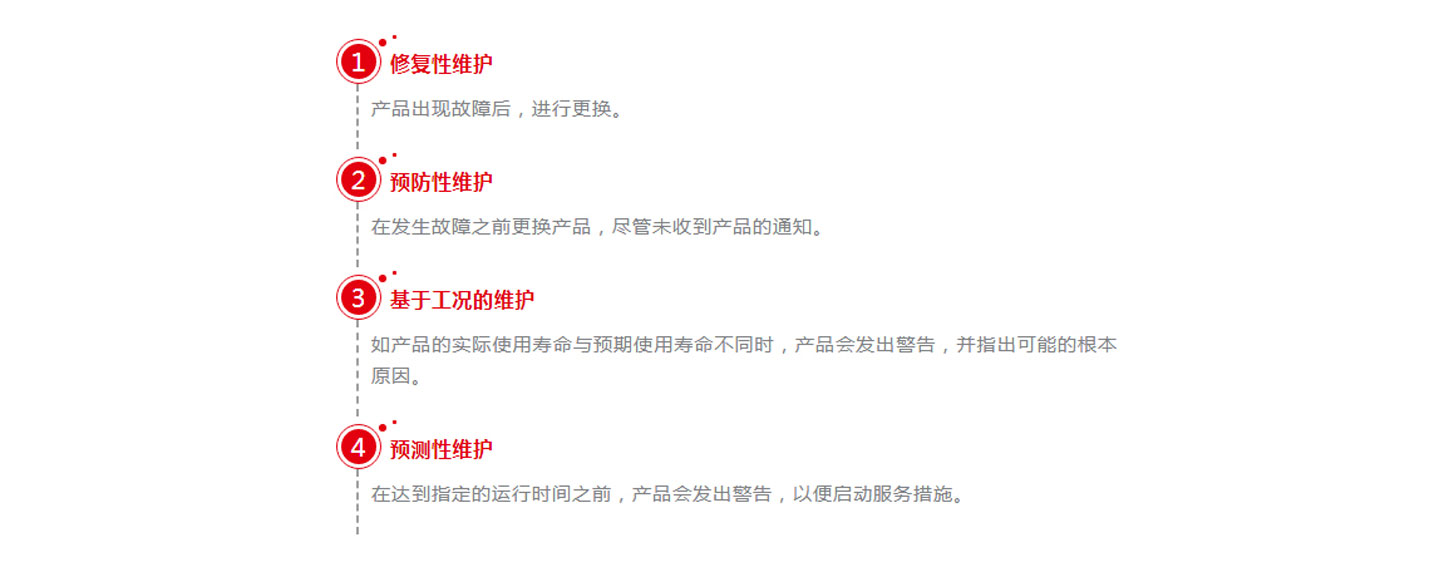 為何需要基于工況的維護?就是要在故障真正發(fā)生之前檢測潛在的故障。而修復(fù)性和預(yù)防性維護是根據(jù)故障(事件)或時間進行的,是機器設(shè)備在出現(xiàn)故障(修復(fù)性)或達到預(yù)先設(shè)定的運行時間(預(yù)防性)后予以維護。這類型的維護不使用來自實際應(yīng)用的任何反饋。