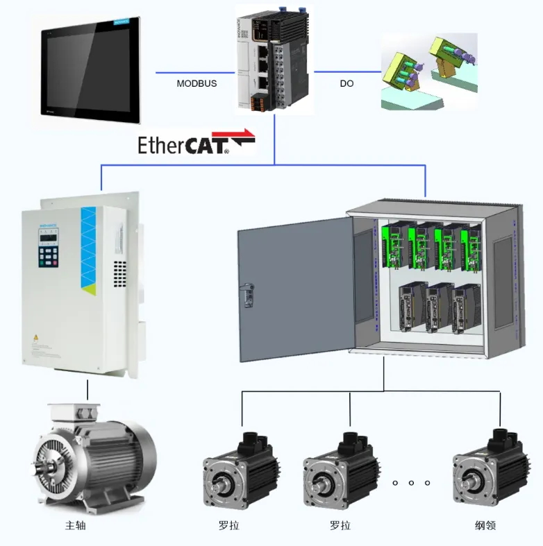針對傳統(tǒng)設(shè)備無法生產(chǎn)高附加值品種的痛點,匯川全電方案采用EtherCAT總線方案,通訊速率相比CAN總線方案更快,羅拉速度實時可調(diào),響應(yīng)更快,能滿足超短竹節(jié)、段彩等特殊品種工藝要求。