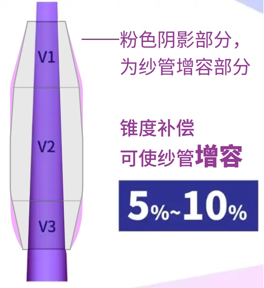 紗筒擴容10%、脫圈少、成型更美觀